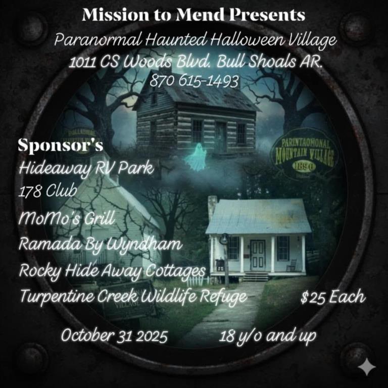 Bull Shoals Caverns is hosting the Paranormal Haunted Halloween Village tour October 31, 2025 at 6pm! It's sure to be a SCREAM! (18 and up only). There is a $25.00 fee for this event.